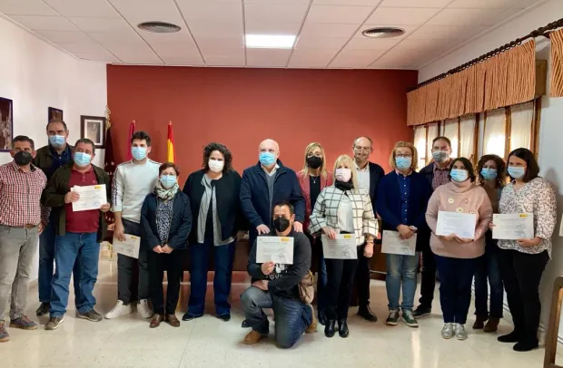 En el acto de clausura del RECUAL “Molinicos Forma, Reforma y Activa”, junto a la alcaldesa, Lola Serrano; el delegado provincial de Economía, Empresas y Empleo, Nicolás Merino y la directora general de Formación Profesional por el Empleo, Marta Roldán