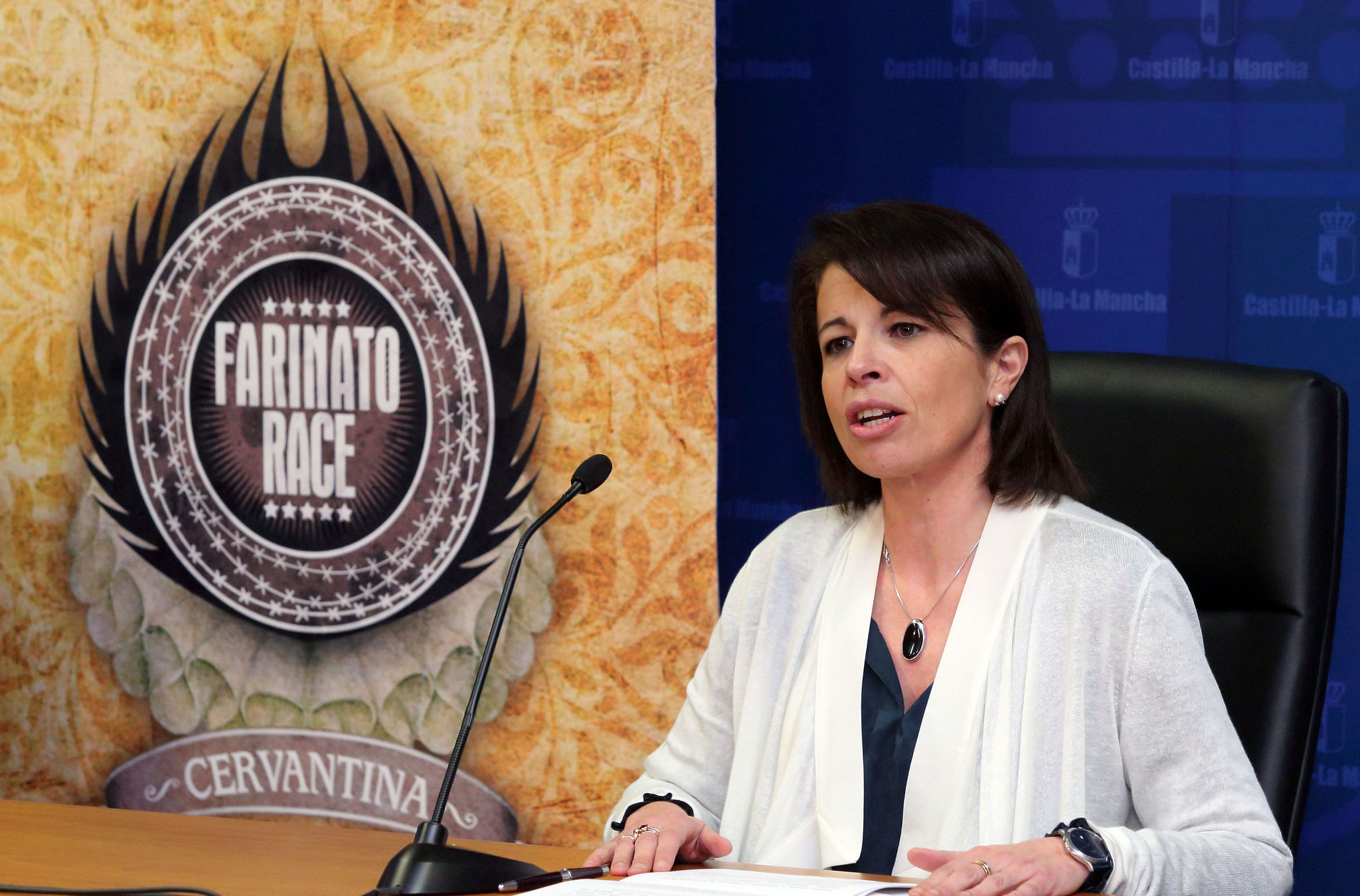 La consejera de Educación, Cultura y Deportes de Castilla-La Mancha, Reyes Estévez, durante la presentación del “Farinato Cervantino”, una prueba deportiva incluida en las Actividades que se celebrarán con motivo del IV Centenario de Cervantes. (Foto: Álvaro Ruiz // JCCM).