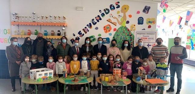 Durante la visita al CEIP `San Antonio´, Úbeda y Gutiérrez han podido intercambiar opiniones sobre el proyecto STEAM y sus resultados con el director del centro educativo, Julio Vegas, y el director del Centro Regional del Formación del Profesorado, José Antonio Bravo, así como del resto del equipo directivo y los y las docentes STEAM.