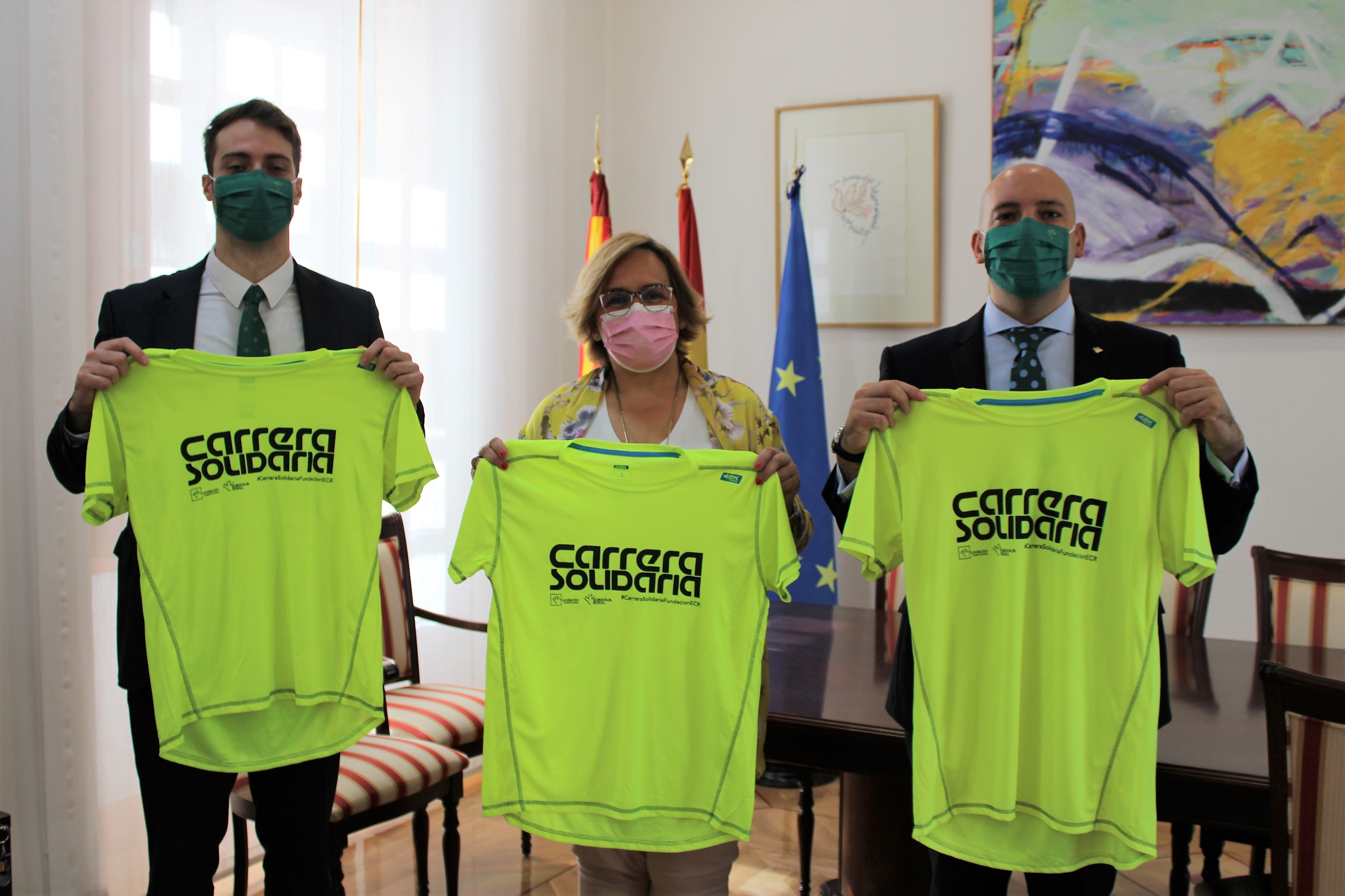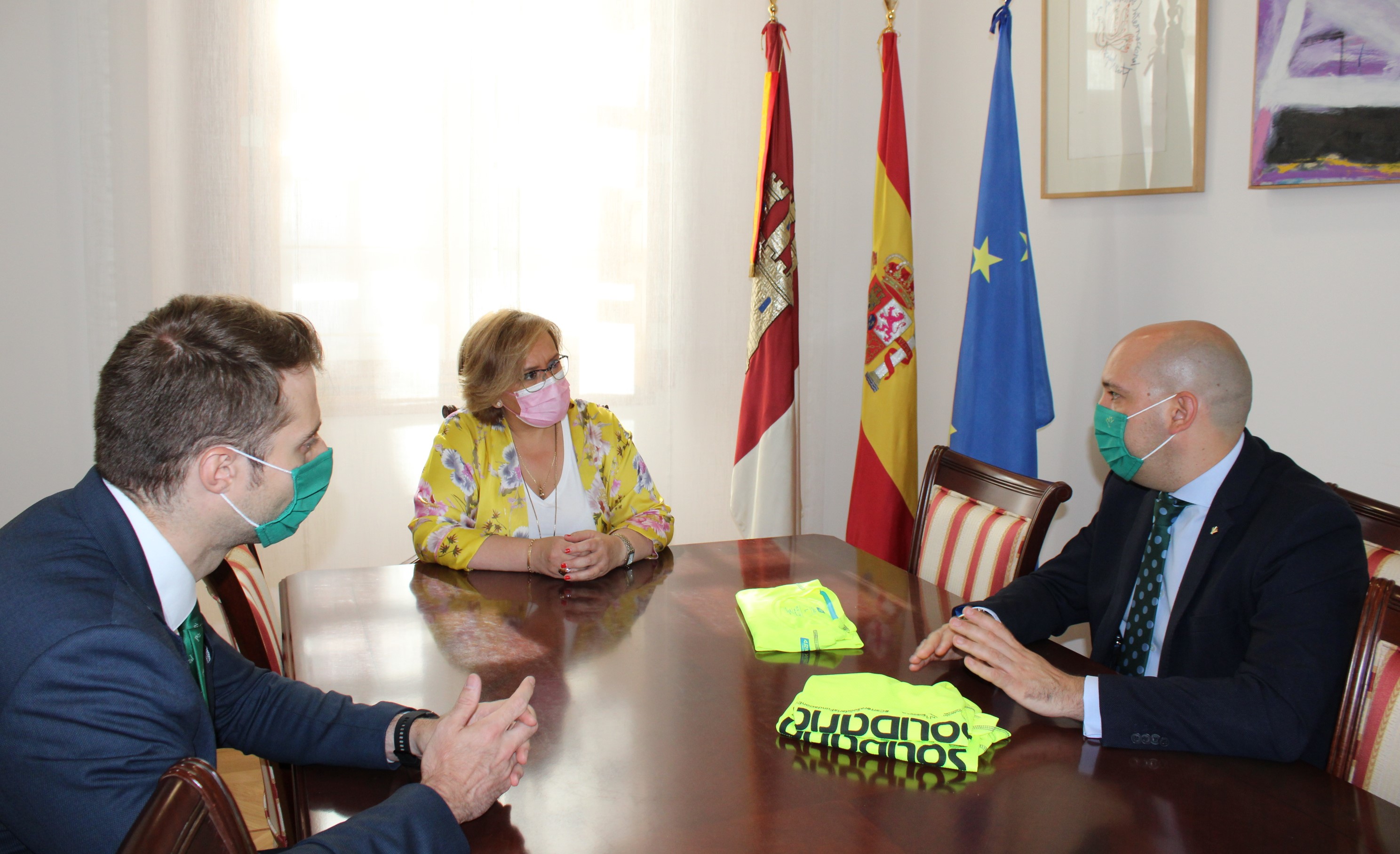 Ciudad Real, 11 de junio de 2021.- La delegada de la Junta de Comunidades en Ciudad Real, Carmen Teresa Olmedo, ha expresado a los representantes de Eurocaja Rural el apoyo del Gobierno de Castilla-La Mancha a la carrera solidaria virtual que celebrarán este domingo en nuestra provincia y anima a los ciudadrealeños a que se inscriban en esta actividad altruista con la que la entidad quiere recaudar fondos para combatir la pobreza infantil.