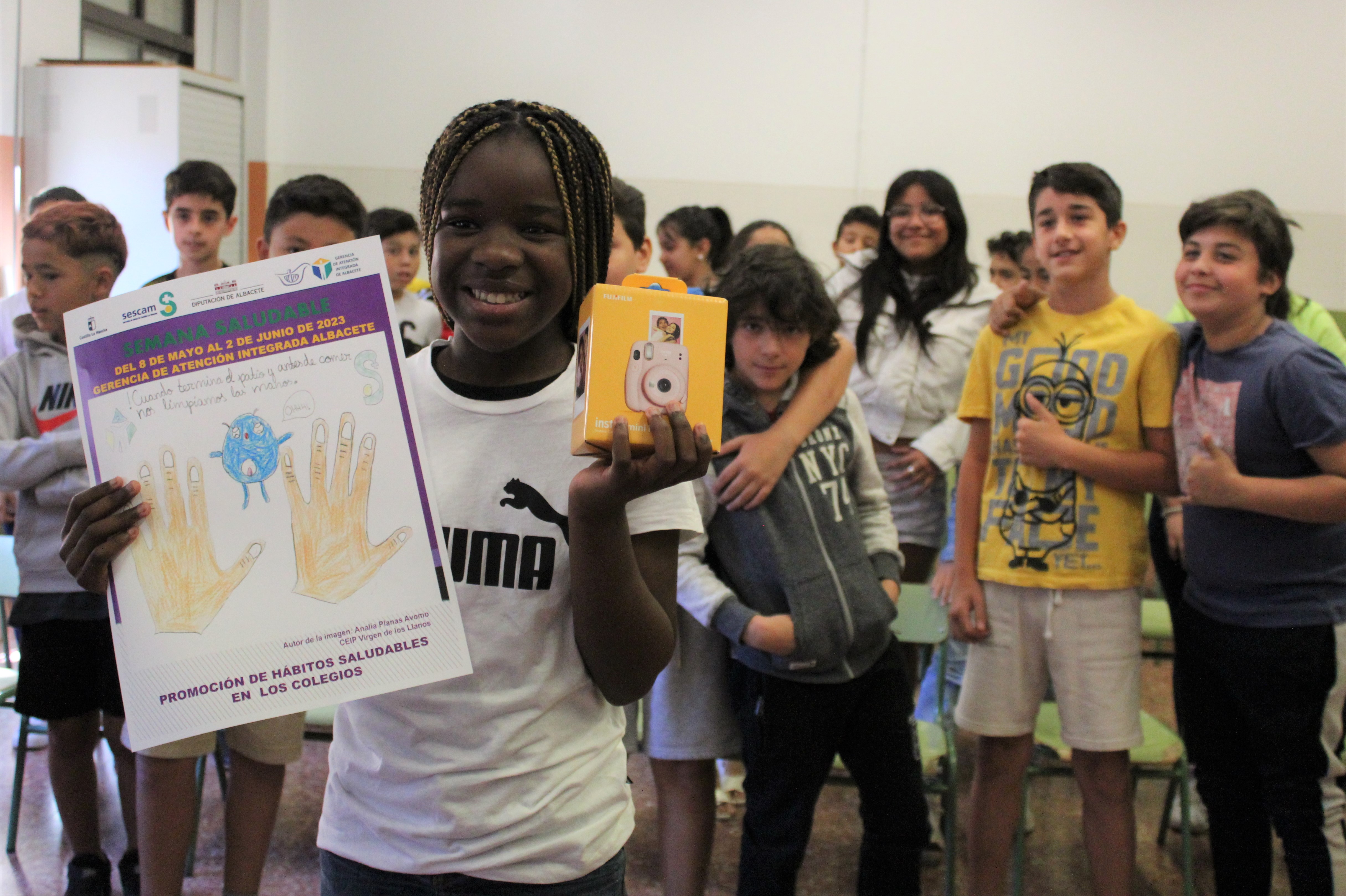 El Colegio Público Virgen de los Llanos de la ciudad de Albacete ha sido el centro educativo elegido para dar a conocer este programa de prevención y promoción de la salud. Y es que en este colegio estudia Analia Planas Avomo. Ella es la estudiante que consiguió el premio de dibujo en 2019 y cuya obra ilustra el cartel de esta nueva edición de la Semana Saludable. Acompañada de sus compañeros, profesores y los profesionales sanitarios, la alumna ha recogido el obsequio como ganadora y ha animado al resto de niños a participar en el concurso.